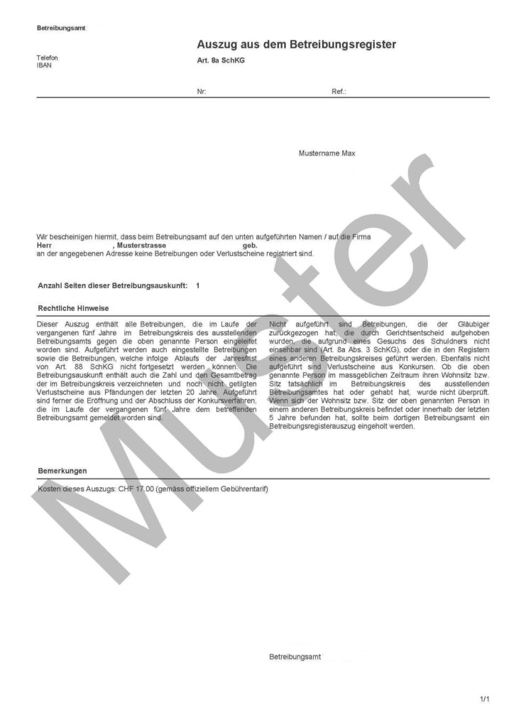 Der Satz „an der angegebenen Adresse keine Betreibungen oder Verlustscheine registriert sind“ ist sehr wichtig!